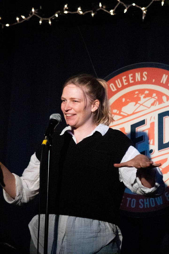 I was up first. One sparkling introduction later, and it was me and the audience and the insanely bright lights. I can’t believe I’m typing this, but there were laughs where I intended there to be laughs, sighs where I intended there to be sighs, and gratifying applause at the end that I promptly crushed up and snorted in my heart. I shared personal stories of medical gaslighting and dating with vaginismus that keen readers of this newsletter will recognize. My intention was to write a love letter to the crowd, and to anyone brave enough to amplify their experience with vaginismus for others who might be suffering in silence like I did for so many years.